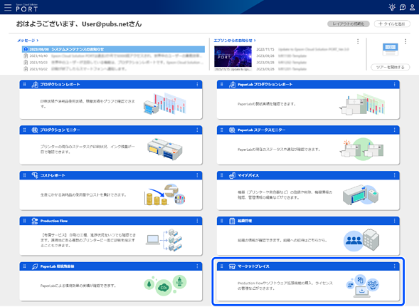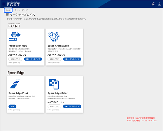 Epson Cloud Solution PORTのホーム画面に戻ります。