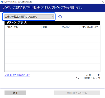 選択したプリンターに対応したソフトウェアが表示されます。[すべてのアプリケーション]を選択すると、すべての機種を対象としたソフトウェアが表示されます。特定機種だけに必要なソフトウェアは表示されません。