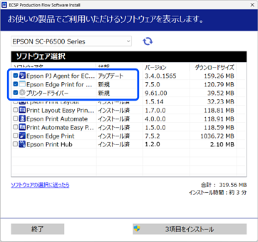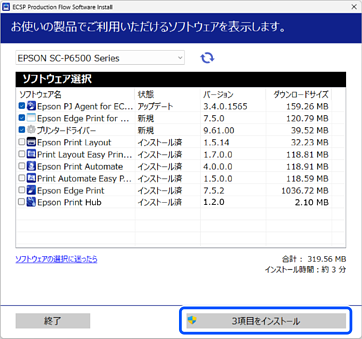 [XX項目をインストール](XXは選択したソフトウェアの数)をクリックします。