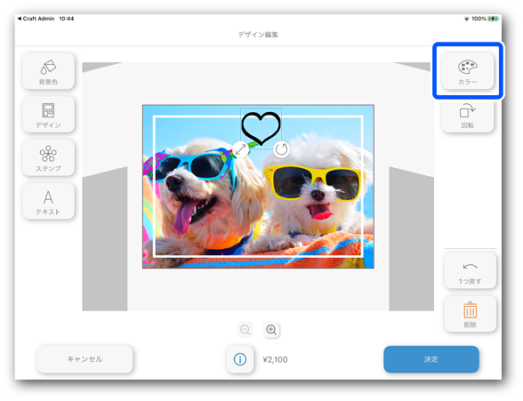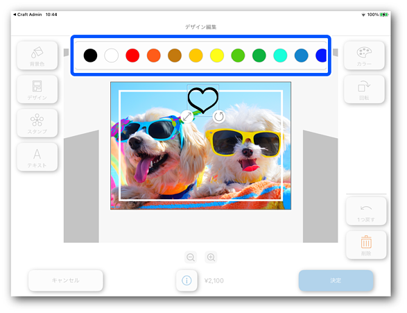 スタンプには「カラー」と「モノクロ」の2種類があります。「モノクロ」のスタンプを選択した場合、スタンプの色を編集できます。