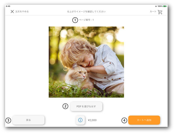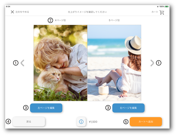 表示されている写真が、フォトブックの何ページ目に印刷されるか確認できます。 |