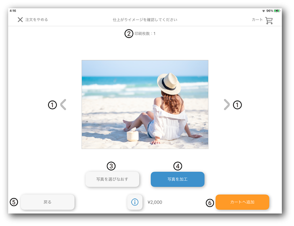 写真の変更・印刷枚数の変更ができます。 |