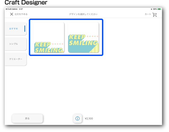 オリジナルテンプレートは注文時にデザイン選択画面の[おすすめ]から選択できます。