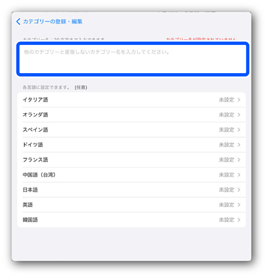 各言語にカテゴリー名を設定した場合、各言語での設定が優先されます。