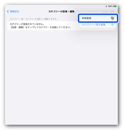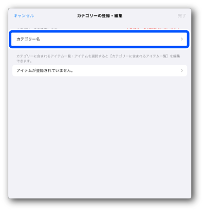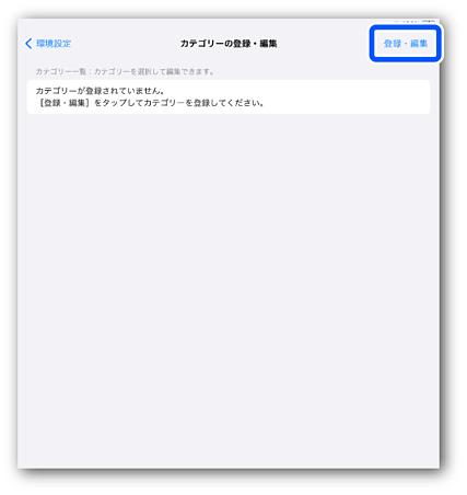 [カテゴリーの登録・編集]をタップして、カテゴリーの登録・編集画面に戻ります。