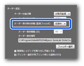 [オーダー設定]の[オーダー受付時の状態(監視フォルダ)]を[処理中]に設定します。
