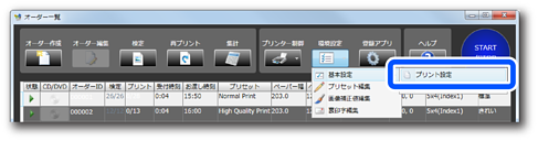 [オーダー一覧]画面の[環境設定]をクリックし、[基本設定]-[プリント設定]をクリックします。
