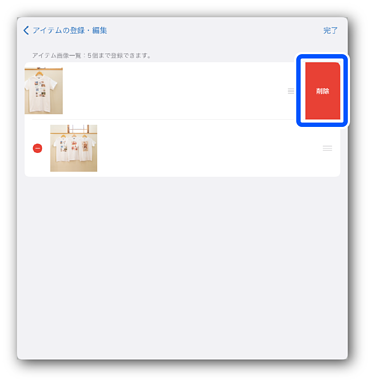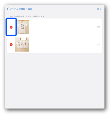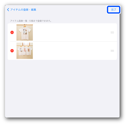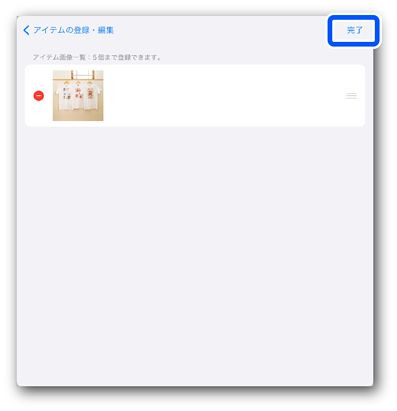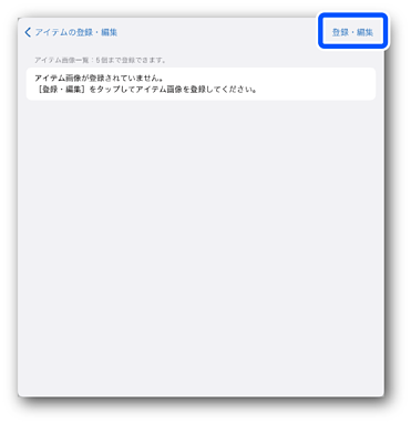 [アイテムの登録・編集]をタップして、アイテムの登録・編集画面に戻ります。