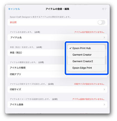 [アイテムの種類]で[その他アイテム]を選択した場合に表示されます。