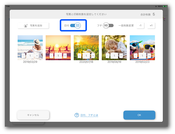 [日付]をタップして、日付の印刷を有効にします。