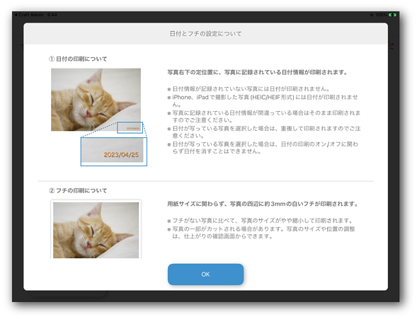 写真に記録されている日付情報が間違っている場合はそのまま印刷されますのでご注意ください。