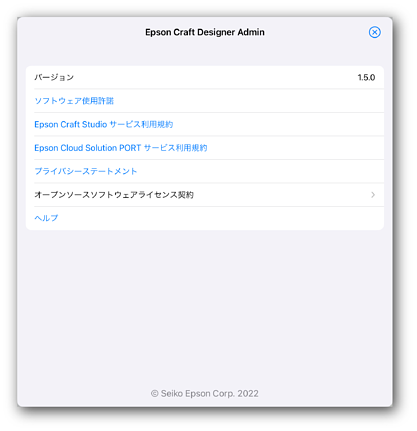 Epson Craft Studioのソフトウェア使用許諾を確認できます。 |
