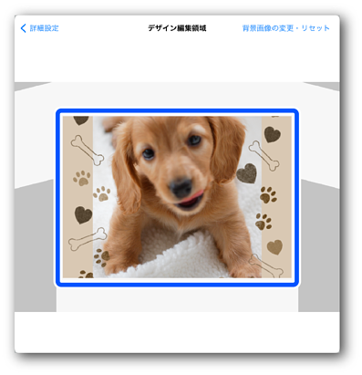 注文画面でデザイン編集できる範囲の調整や、アイテムの仕上がりをイメージできるように背景画像を設定できます。