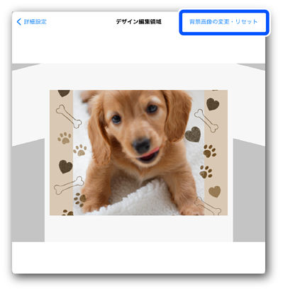 背景画像を変更するために、[背景画像の変更・リセット]をタップして、編集メニューを開きます。