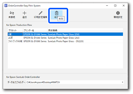 削除する印刷設定をクリックします。