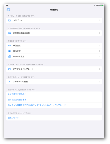 注文画面のカスタマイズや表示するメッセージなどを設定できます。