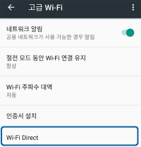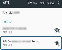• Android OS 버전 또는 모델에 따라 Wi-Fi Direct로 스마트 장치를 프린터를 연결하지 못할 수 있습니다. 기종에 따라 연결하는 방법이 다릅니다. 조작 방법은 스마트 장치와 함께 제공되는 설명서를 참조하십시오.