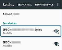 Selecteer de apparaatnaam van de printer en maak vervolgens verbinding via Wi-Fi Direct.