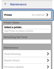 Tik op Printer niet geselecteerd. of de printernaam boven in het scherm.