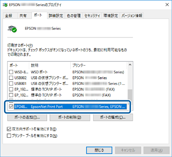 [ポート]タブを選択して、選択されている印刷ポートを確認します。