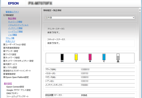 Webブラウザーを使ってプリンターのWebインターフェイス(以降「Web Config」と記載)にアクセスできます。ここでプリンターの状態確認や、設定変更ができます。Web Configを使うには、プリンターやコンピューターまたはスマートデバイスにIPアドレスが設定されていて、同じネットワークに接続されている必要があります。