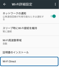 搭載されているAndroid OSのバージョンや機種によってはWi-Fi Directで接続できない場合があります。また、機種により操作手順が異なります。スマートデバイスの操作方法は、スマートデバイスのマニュアルをご覧ください。