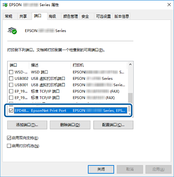 “端口”列中已选中的打印端口为可用打印端口。可以通过描述查看端口类型。