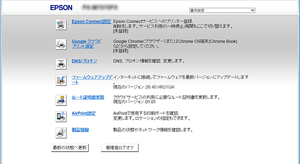 スマートデバイスでは、Epson iPrintのプリンターのメンテナンス画面からもWeb Configを起動できます。