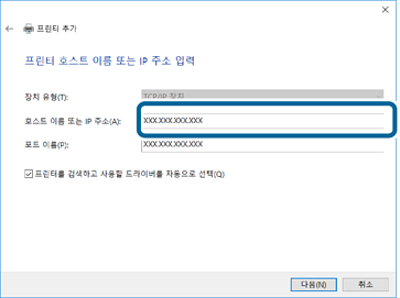 在主机名或 IP 地址或打印机名或 IP 地址中输入本产品的 IP 地址或产品型号,然后点击下一步。