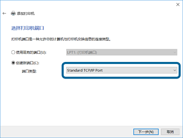选择创建新端口并为端口类型选择标准 TCP/IP 端口,然后点击下一步。