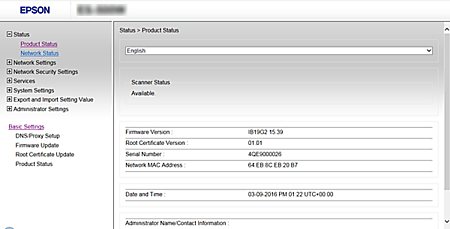 يُمكنك الدخول إلى واجهة متصفح الويب الخاص بالماسحة الضوئية (يُسمى "Web Config") من خلال استخدام متصفح الويب. يُمكنك التحقق من حالة الماسحة الضوئية وتغييرها من خلال متصفح الويب. ينبغي أن تحتوي الماسحات الضوئية وأجهزة الحاسوب أو الأجهزة الذكية على عنوان IP ليتم توصيلهما بالشبكة ذاتها.