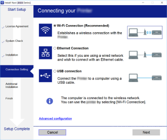 حدد اتصال Wi-Fi على الشاشة التالية، ثم انقر فوق التالي.