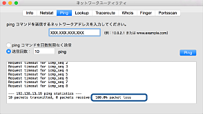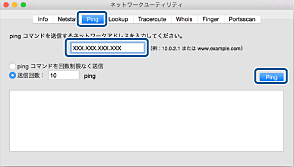 [Ping]タブをクリックし、手順1で確認したIPアドレスを入力して、[Ping]をクリックします。