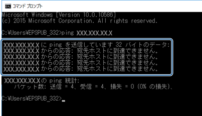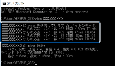 「ping xxx.xxx.xxx.xxx」と入力して、Enterキーを押します。