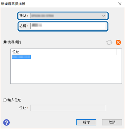 新增網路掃描器 畫面會隨即顯示。
