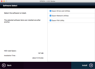 Павінны быць выбраны Epson Network Utilities і Epson Driver and Utilities.