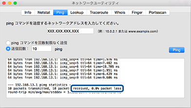 [Ping]タブをクリックし、手順1で確認したIPアドレスを入力して、[Ping]をクリックします。