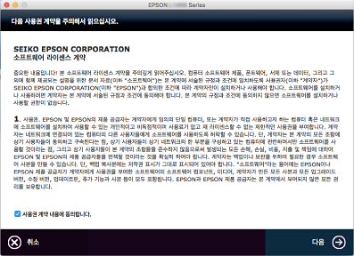 사용권 계약을 확인하고 다음을 클릭합니다.