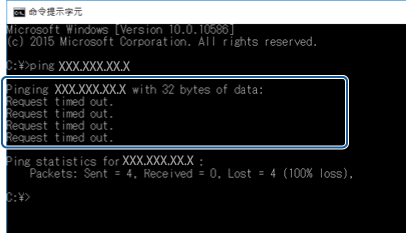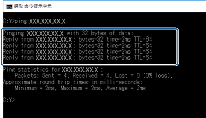 輸入「ping xxx.xxx.xxx.xxx」,然後按下確認 (Enter) 鍵。