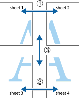 Col·loqueu la vora del Sheet 1 i el Sheet 2 sobre el Sheet 3 i el Sheet 4, alineeu les creus i enganxeu temporalment els fulls per la part del darrere.