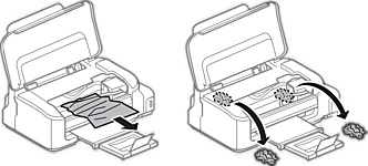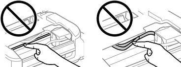 Mai no toqueu els botons del tauler de control si teniu la mà a l'interior de la impressora. Si la impressora comença a funcionar, pot causar lesions. Aneu amb compte de no tocar les parts que sobresurten per prevenir lesions.