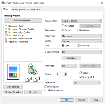 Seleccioneu Preferències o Propietats per accedir a la finestra del controlador de la impressora.