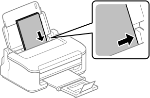 Τοποθετήστε χαρτί κατακόρυφα στη δεξιά πλευρά της πίσω τροφοδοσίας χαρτιού με την όψη εκτύπωσης στραμμένη προς τα πάνω.