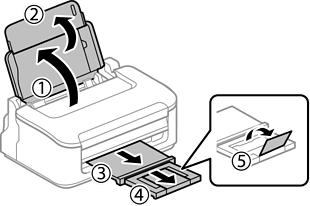 Ανοίξτε τη στήριξη χαρτιού, σύρετε προς τα έξω τον δίσκο εξόδου και, στη συνέχεια, σηκώστε το στοπ.