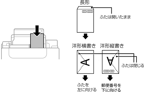印刷する面を手前にして、排紙トレイの右端に沿ってセットし、用紙ガイドを封筒に合わせてください。