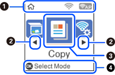Ikon dan nama fungsi ditampilkan sebagai ikon menu. Pilih ikon dengan menekan tombol |