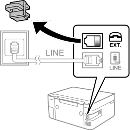 Sambungkan perangkat telepon dan port EXT. dengan kabel telepon.