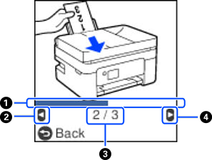 Anda dapat menampilkan animasi perintah pengoperasian seperti memasukkan kertas atau mengambil kertas yang tersangkut di layar LCD.