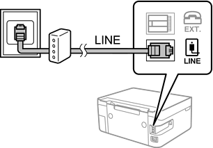 کابل تلفن مودم DSL یا آداپتور ترمینال ISDN را به پورت LINE که در پشت چاپگر قرار دارد وصل کنید. برای کسب اطلاعات بیشتر‏،  به مدارک عرضه شده همراه مودم یا آداپتور مراجعه کنید.