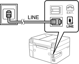 یک کابل تلفن را از فیش دیواری یا درگاه PBX به درگاه LINE در پشت چاپگر وصل کنید.